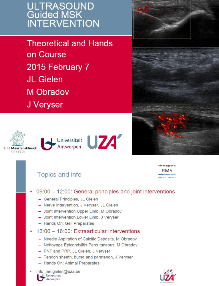 Prof Gielen, Dr Veryser & Dr Obradov kindly invite you to attend the annual MSK interventions course at the University Hospital of Antwerp on February 7th 2015