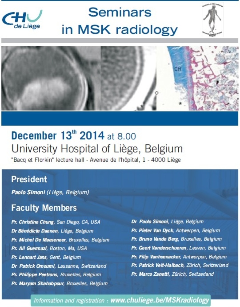 December 13th 2014 at 8.00for more info, please visit: http://www.chu.ulg.ac.be/jcms/c_3772879/seminars-in-msk-radiology
